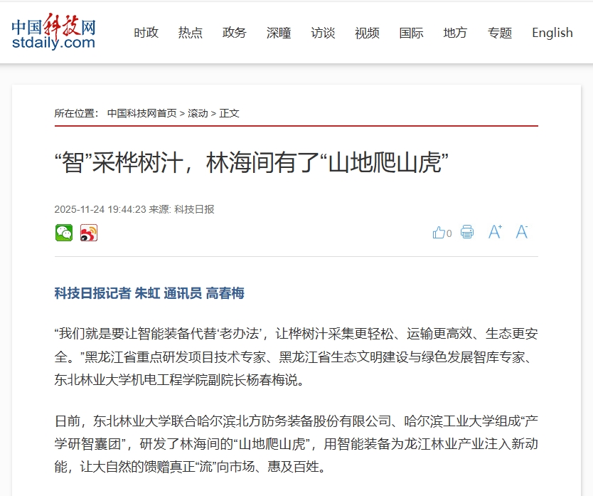 【中国科技网】“智”采桦树汁,林海间有了“山地爬山虎”