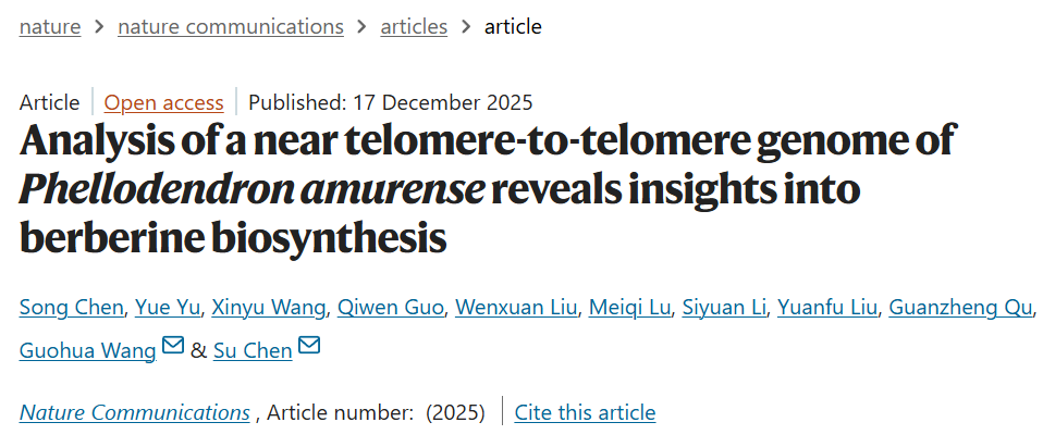 近日,林木遗传育种全国重点实验室陈肃研究团队联合汪国华研究团队在NatureCommunications(TOP期刊,IF=15.7)在线发表题为“Analysisofaneartelomere-to-telomeregenomeofPhellodendronamurenserevealsinsightsintoberberinebiosynthesis”的研究论文。完成了我国珍稀药用植物黄檗的端粒到端粒(T2T)高质量基因组组装,系统解析了其复杂的古八倍体演化历程,并首次揭示LTR反转录转座子在黄连素生物合成途径进化中的核心作用...