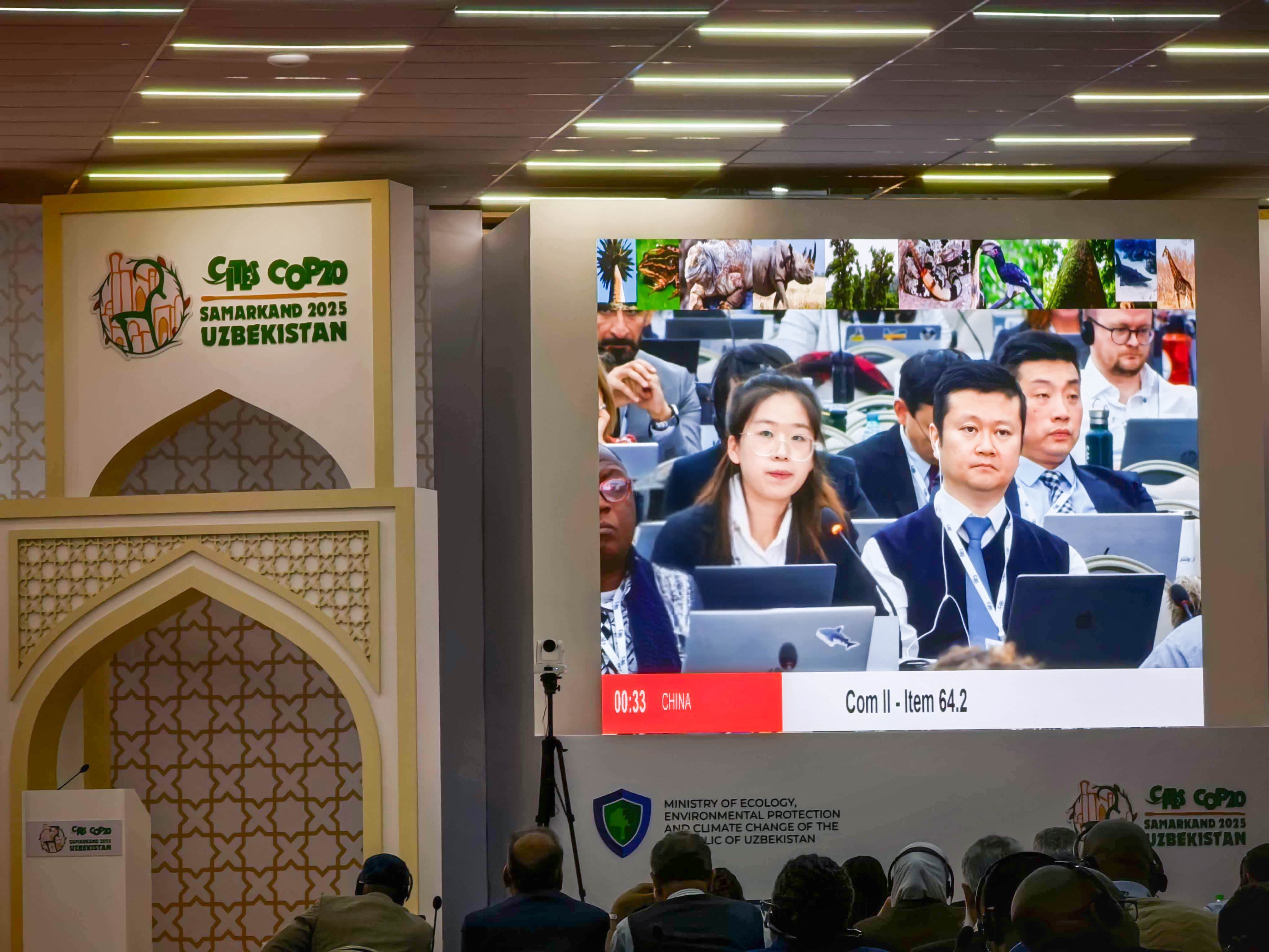 日前,《濒危野生动植物种国际贸易公约》(CITES)第20次缔约方大会(CoP20)在乌兹别克斯坦撒马尔罕圆满落幕。我校野生动物与自然保护地学院博士生苗震作为中国政府代表团成员参会并作大会发言,推动两类议题在谈判中取得实质进展。CITES是全球野生动植物贸易领域最具影响力的多边环境公约之一。自1975年生效以来,CITES在规范野生动植物国际贸易、促进物种可持续管理方面发挥了重要作用。本次大会恰逢CITES生效50周年,164个...