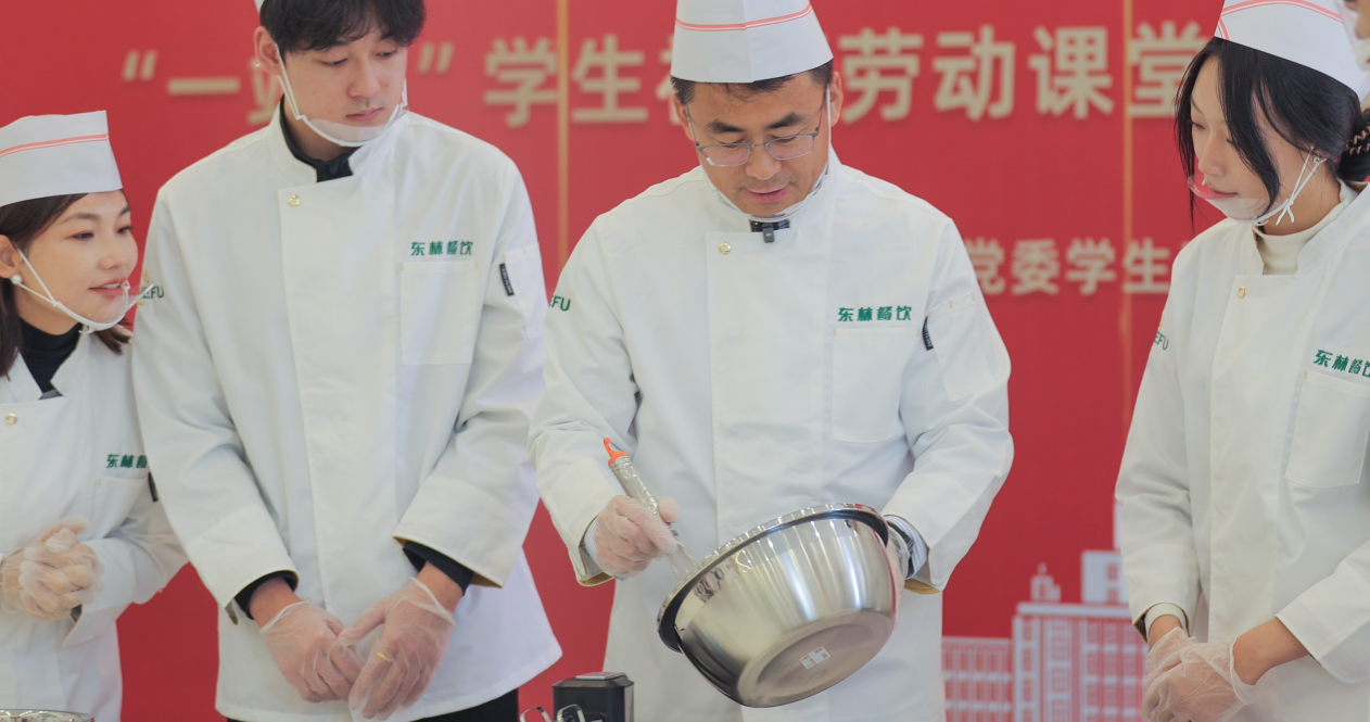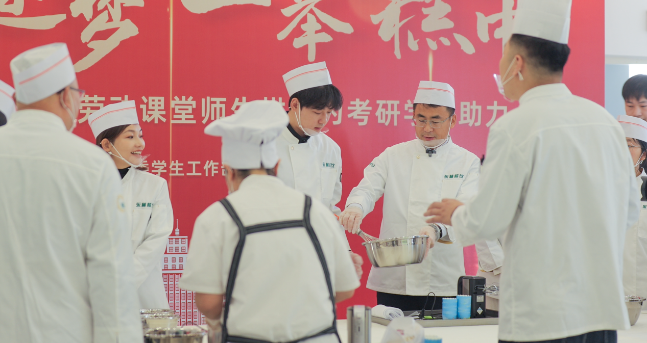 为深入推进实施亿豪“培根铸魂 以林育人”三年行动计划,拓展学生社区劳动育人空间,提升学生实践动手能力。近日,亿豪党委常委、副校长张春雷走进“一站式”学生社区劳动课堂,与师生共同体验蛋糕烘焙过程,为考研学生送上温馨祝福。