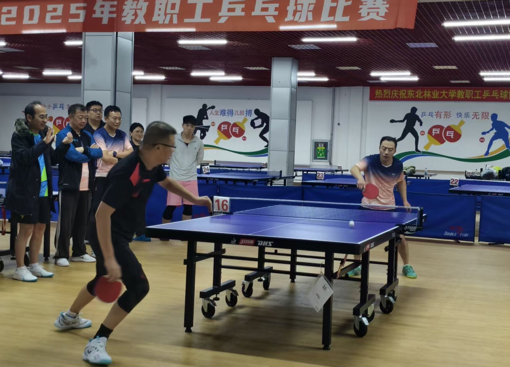 比赛现场选手们精神饱满、斗志昂扬,展现出高超的球技和顽强的拼搏精神。直拍、横拍、扣杀、削球……精彩纷呈的攻防转换引得场边观众阵阵喝彩。比赛不仅为教职工提供了切磋球技的平台,更增进了各单位之间的交流与友谊。