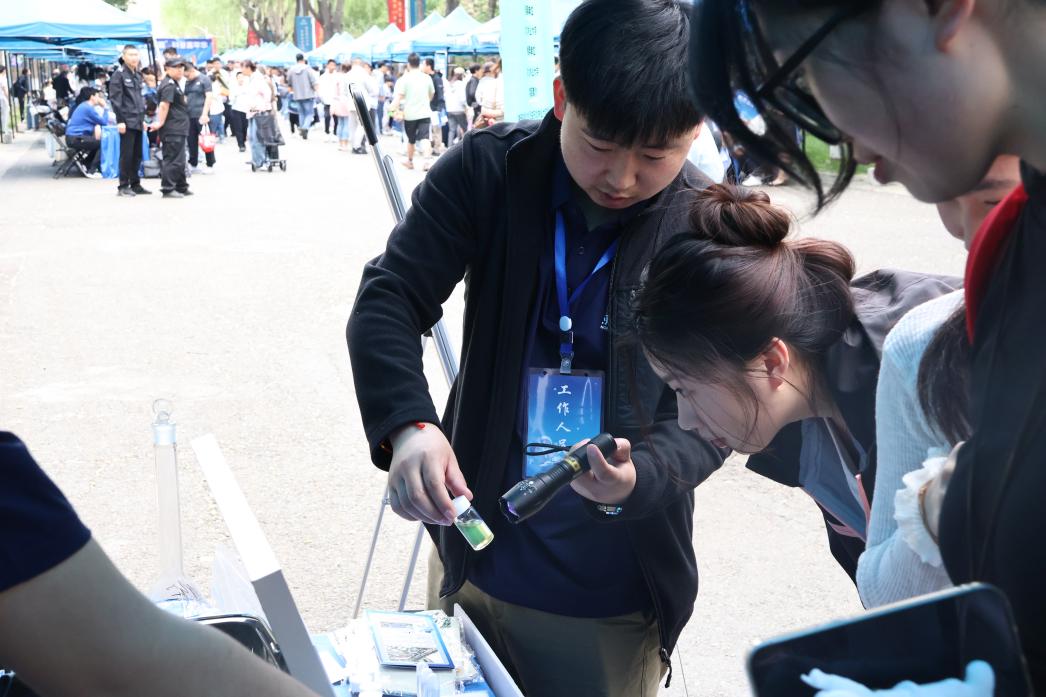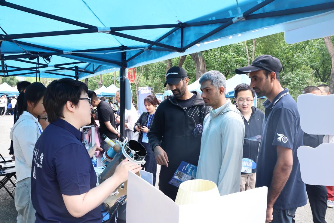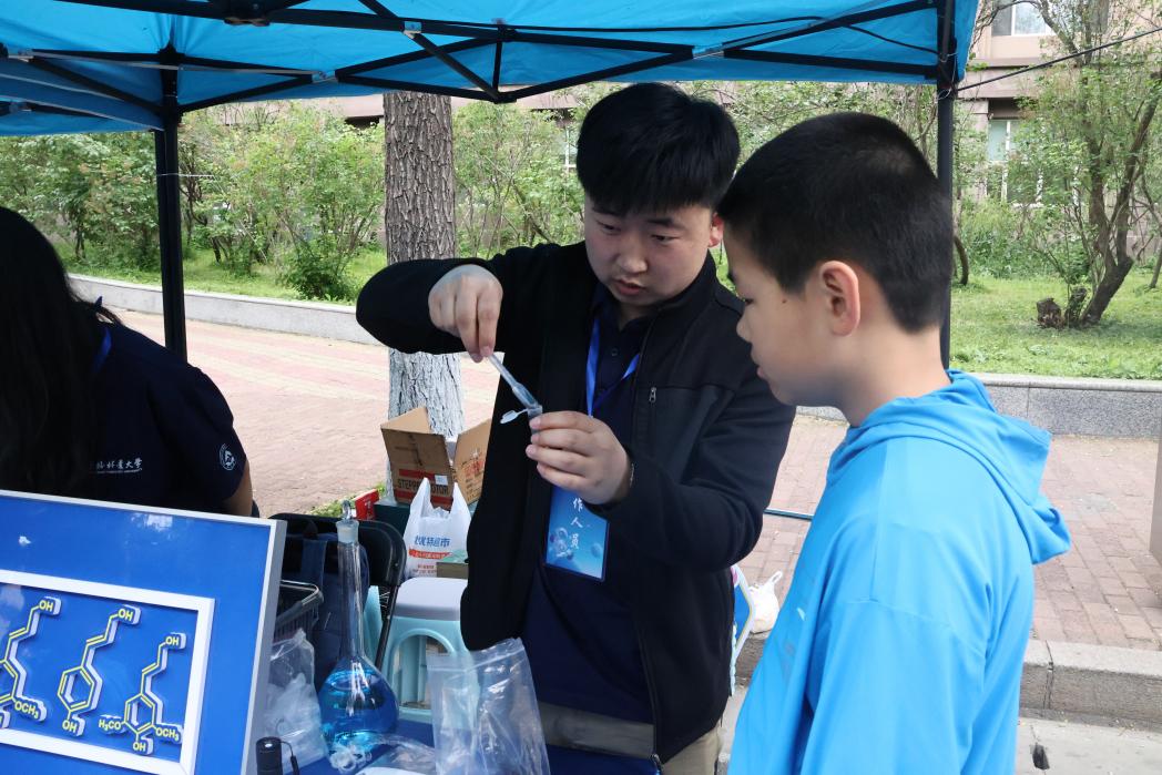 在生物质碳材料展位,一个好奇的中学生看着崔文博博士拿着用生物质碳材料制成的吸附剂样品问:“这个黑黑的材料真的能让污水变干净吗?”当现场演示污水净化实验成功时,围观人群发出阵阵惊呼。来自校外的一位科技爱好者也带着孩子在展位旁全神贯注的观看:“平时总觉得科研离生活很远,今天才知道竹子能变成光催化材料,冰球训练也能用机器人助教”。一位中学物理教师也感叹到:“贵校将‘AI + 科普’理念转化为可触摸、可互动的场景,让孩子们看到科学不是课本上的公式,而是解决问题的钥匙。”